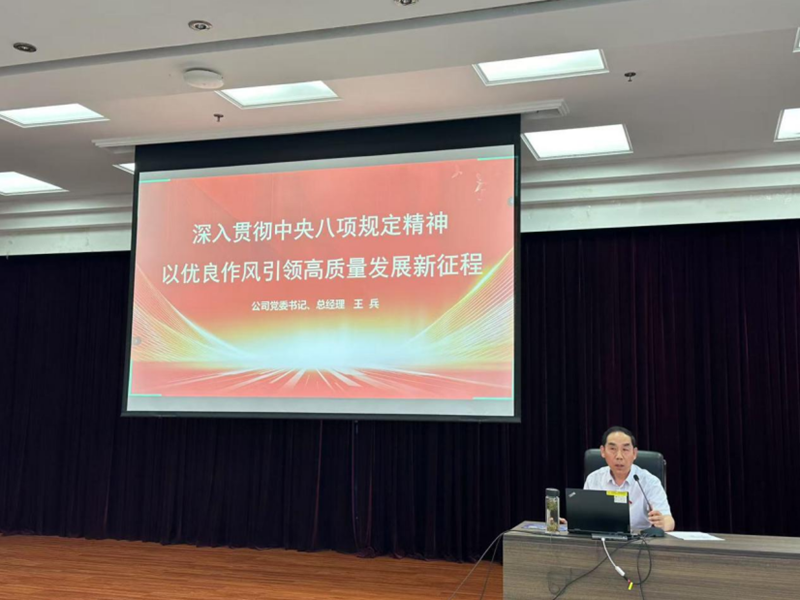 為深入貫徹落實中央八項規定精神,持之以恒推進作風建設,進一步增強黨員干部紀律意識和規矩意識。按照公司黨委工作計劃,7月23日,公司黨委書記王兵為公司全體黨員講授題目為《深入貫徹中央八項規定精神 以優良作風引領高質量發展新征程》專題黨課。